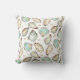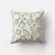 This coastal cool throw pillow for your beach house, patio, or salty abode features a pattern of soft cream and aqua watercolor oyster and pearl illustrations.