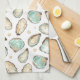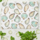 This coastal chic kitchen towel features soft cream and aqua watercolor oyster and pearl illustrations. Perfect for beach houses, coastal abodes, or anyone who loves oysters and fresh shellfish.