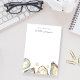 Personalise this coastal chic post-it pad with two lines of custom text in classic navy blue script and serif lettering. Design features a grouping f delicate watercolor oyster shell illustrations in beachy shade of ivory and muted aqua. Shown with "from the desk of [Name]". Designed to coordinate with our Coastal Oyster business and home collection.