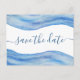 This save the date postcard is an efficient and simple yet elegant way to notify guests of your celebration. The graceful design is hand painted watercolor in shades of light blue, classic blue and navy blue. The abstract design resembles ocean waves, perfect for a beach, ocean or nautical theme event.