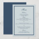 Coastal wedding menu card featuring a soft dusty blue palette, refined typography, and timeless old money elegance. Designed for formal receptions, estate weddings, and upscale dining experiences. Perfect for showcasing your curated menu while elevating your tablescape with a clean, sophisticated aesthetic. Coordinates beautifully with matching invitation and day-of stationery.
