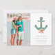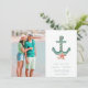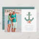 Capture the essence of seaside romance with our Coastal Wedding Photo Save the Date. The front features a stunning photo and a teal green nautical anchor adorned with seashells, beautifully symbolising your beachside celebration. Flip it over to reveal a stylish stripe pattern on the back, adding a touch of nautical charm. Perfect for inviting your guests to share in the joy of your coastal wedding and marking their calendars for a day filled with love and ocean breezes!