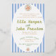 Set the tone for your elegant coastal wedding with this stunning invitation featuring blue stripes and luxurious foil lettering. Perfect for seaside ceremonies, destination weddings, or nautical-themed celebrations, this design combines timeless charm with modern sophistication. Fully customisable to include all your event details and available in premium finishes. Make your special day unforgettable with this stylish coastal invitation!