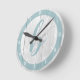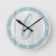 Coastal White Wood Print & Seaglass Blue Monogram Round Clock