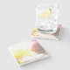 The coasters are gorgeous, a quality feel and heavy weight. They look like a precious archeological find. A rustic stone juxtaposed with a modern floral black and white print. I like the way the print goes slightly imperfect on the cut stone edges giving them a kind-of natural beauty.