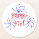 Fireworks offer a "Happy 4th!" greeting. Pinwheels of bright blue stars surround the red text.