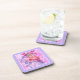 Beautiful square coaster or table mat, with wallflowers in romantic shades of pink, lilac and mauve and a delicate pale lilac border, from a watercolour painting by Judy Adamson.