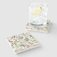 The coasters are gorgeous, a quality feel and heavy weight. They look like a precious archeological find. A rustic stone juxtaposed with a modern floral black and white print. I like the way the print goes slightly imperfect on the cut stone edges giving them a kind-of natural beauty.