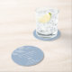 Announce your engagement with this modern save the date in a unique coaster format. This design features minimalist greenery in light blue. Use the template fields to edit with your wedding details in white over a dusty blue background. Change the colours of the leaves, font and background to suit your wedding theme. To see the matching dusty blue wedding stationery suite visit www.zazzle.com/dotellabelle