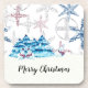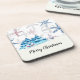 This images matches a series of party supplies for a Christmas Party. These coasters come in a package of six, are plastic and have a cork backing.