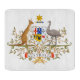 This design features the Australian coat of arms. Australia is a sovereign country comprising the mainland of the Australian continent, the island of Tasmania and numerous smaller islands. Australia's capital is Canberra, and its largest city is Sydney. The country's other major urban areas are Melbourne, Brisbane, Perth and Adelaide. The coat of arms of Australia, officially called the Commonwealth Coat of Arms, is the formal symbol of the Commonwealth of Australia. A shield, depicting symbols of Australia's six states, is held up by a kangaroo and an emu, which are both animals native to Australia. The seven-pointed Commonwealth Star above the crest also represents Australia's states and territories, while various floral emblems appear below the shield.