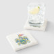 The coasters are gorgeous, a quality feel and heavy weight. They look like a precious archeological find. A rustic stone juxtaposed with a modern floral black and white print. I like the way the print goes slightly imperfect on the cut stone edges giving them a kind-of natural beauty.