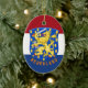 The "lesser" coat of arms of the Netherlands. The coat of arms of the Kingdom of the Netherlands was originally adopted in 1815 and later modified in 1907. The arms are a composite of the arms of the former Dutch Republic and the arms of the House of Nassau, it features a chequered shield with a lion grasping a sword in one hand and a bundle of arrows in the other and is the heraldic symbol of the monarch (King Willem-Alexander) and the country.
