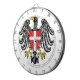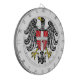 This design features the coat of arms of Vienna, which is the national capital, largest city and one of nine states of Austria. Vienna is the cultural, economic and political center of Austria. It is one of the largest cities in Europe. Something relating to the city of Vienna is known as Viennese.