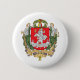 Round Button with design with coat of arms of Vilnius, capital city of Lithuania; with illustration of saint Christopher and infant Jesus