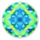 Knob in a tie dye pattern in shades of cobalt blue, turquoise, and lime green, accented with white