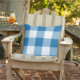 Pillow design features a casual gingham plaid / check pattern that is perfect for summertime! Note, you can customise the cobalt blue background colour to coordinate with your outdoor decor.