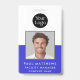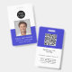 This attractive professional company ID Badge has the employee photo, name and title on the front along with your company logo. The back of the badge has a template for your company website QR code and additional company information as desired. All of the text may be edited as you prefer. The popular blue and white design has visual appeal with a professional look.