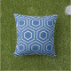Cobalt Blue hexagonal geometric trellis pattern pillow for outdoors. Made in the USA. High quality twill pattern print. UV and mildew resistant garden or patio pillows in with modern designs in bright summer colours. Available in 16 or 20 inch square and 13 by 21 rectangular sizes. Insert included. (Also available as an interior couch or sofa throw pillow, just select cotton or polyester from the Fabric tab).