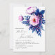 Cobalt Blue Pink Stylish Elegant Floral Wedding Invitation