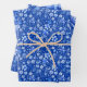 Cobalt Blue Tropical Flowers and Leaves 3 Patterns Wrapping Paper Sheet