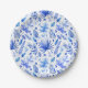 Cobalt Blue Tropical Leaves Pattern 7" Paper Plate