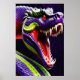 Menacing cobra snake with vibrant vibrant green and purple scales .showcasing its terrifyingly large fangs and a venomous glare.artificial intelligence
