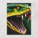 Menacing cobra snake with vibrant green and yellow scales showcasing its terrifyingly large fangs and a venomous glare.artificial intelligence art