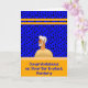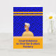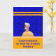 Cochlear Ear Implant Surgery card with an older man showing his implant. The background is royal blue and has dots with gold coloured bars.