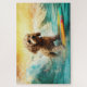 Immerse yourself in the playful world of canine adventure with this captivating painting. A spirited dog takes to the waves, skilfully riding the surf on a sun-kissed beach. The vibrant artwork beautifully captures the essence of beachside excitement as the dog fearlessly rides the waves, embodying the spirit of fun and freedom. With a harmonious blend of colours and dynamic brushstrokes, this piece brings the joy of surfing and the beach right into your space, making it a delightful addition to any art collection