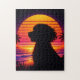 Retro sunset cockapoo Puzzle featuring a beautiful cockapoo silhouette against a vibrant beach sunset. This design is perfect for cockapoo owners, cockapoo mums, cockapoo dads and dog lovers who adore this playful and loving breed.