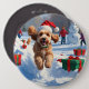 Cockapoo Running in Snow with Christmas Hat 6 Cm Round Badge