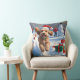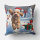 Cockapoo Running in Snow with Christmas Hat Cushion
