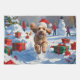 A fluffy Cockapoo runs happily through the snowy winter scene, wearing a festive red Christmas hat. This cheerful design highlights the breed’s curly coat, affectionate nature, and playful personality while capturing the warmth and joy of the holiday season. A delightful winter moment full of festive charm.