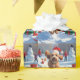 A fluffy Cockapoo runs happily through the snowy winter scene, wearing a festive red Christmas hat. This cheerful design highlights the breed’s curly coat, affectionate nature, and playful personality while capturing the warmth and joy of the holiday season. A delightful winter moment full of festive charm.