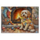 Cockapoo Sitting by Fireplace with Christmas Light Cutting Board