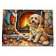 A heartwarming Christmas artwork featuring an adorable Cockapoo sitting beside a glowing fireplace decorated with stockings and twinkling Christmas lights. This cozy holiday scene captures the Cockapoo’s playful personality and loving nature, making it a perfect piece for dog lovers and festive home decor. Bring the warmth of the season and the charm of this fluffy companion into your holiday celebrations.