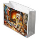 Cockapoo Sitting by Fireplace with Christmas Light Large Gift Bag