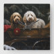 Cockapoo Snowy Sleigh Christmas Decor Square Wall Clock