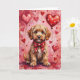 Cockapoo Valentine Dog Sitting with Hearts Red Card