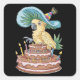 cockatoo perched on birthday cake fancy hat square sticker