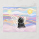 A black Cocker Spaniel tries out their wings among heaven's fluffy clouds before they are free to enter Rainbow Bridge where angels and friends await.l