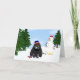 Unique Cocker Spaniel winter wonderland design. Cocker with a bit of snow on his nose. Irritated snowman looks on. To ward off the cold the Cocker Spaniel has on a scarf and hat that are the colours of his country.