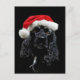 Black cocker spaniel wears a Santa Claus hat dog lovers Christmas postcard