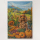 Celebrate the beauty of fall with this vibrant painting of a dog sitting beside a bountiful Thanksgiving harvest. The rich autumn colours of pumpkins, sunflowers, and rustic farmhouse scenery create a warm and inviting atmosphere, perfect for any dog lover's seasonal décor.