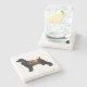 The coasters are gorgeous, a quality feel and heavy weight. They look like a precious archeological find. A rustic stone juxtaposed with a modern floral black and white print. I like the way the print goes slightly imperfect on the cut stone edges giving them a kind-of natural beauty.