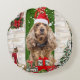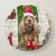 Cocker Spaniel Dog sitting outside decorated home with Christmas wreath, Christmas tree is a perfect Christmas gift idea for dog lovers.