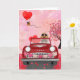 Cocker Spaniel Driving Car with Hearts Valentine's Card