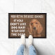 Custom dog doormat with a funny quote. "If you don't like dog hair, stay off the sofa." It has a non-slip rubber that won't crack or buckle, resists fading, mould, and mildew and can be easily cleaned with a hose. Be creative - click on CUSTOMIZE to add/remove/change text, change the picture, resize the picture, change colours, background or anything else the customisation tool will allow!
