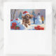 Cocker Spaniel Running in Snow with Christmas Hat Rectangular Sticker